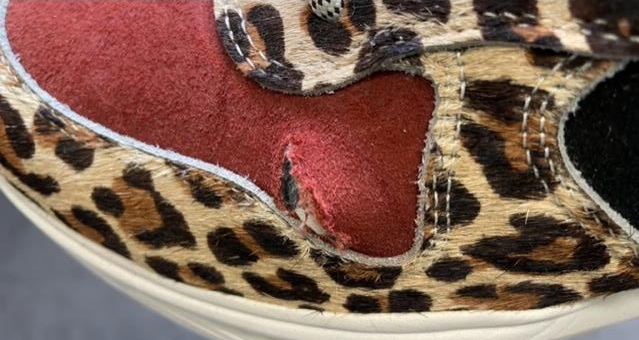 Helaas komt het regelmatig voor dat een schoen scheurt bij een stiksel. In dit geval is het een productiefout. Zodra je gaat lopen op je nieuwe schoenen kan er druk ontstaan op bepaalde stiksels. Wanneer dit niet goed gestikt is of dat er een stukje kwetsbaar (dun) leer gebruikt is, dan kan het scheuren. Zoals te zien is op de foto hieronder is ook dit een productiefout van gescheurd leer in schoenen.